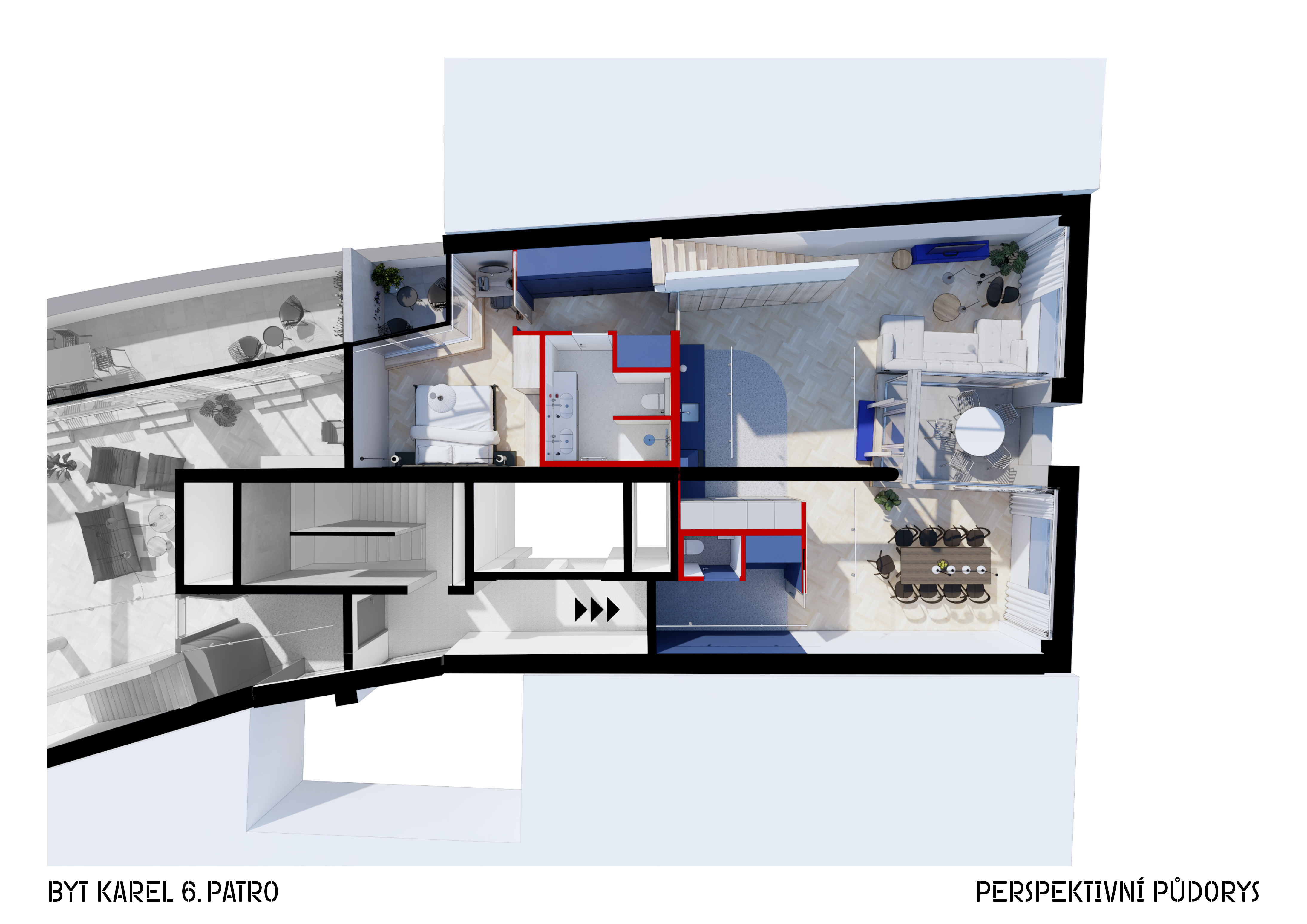 přestavba kancelářských prostor v domě z 90. let na byty určené k nájemnímu bydlení